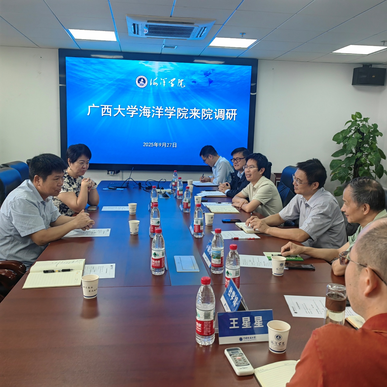 2025年9月27日,广西大学海洋学院院长、广西南海珊瑚礁研究重点实验室主任余克服教授率队,携副院长徐向荣教授、重点实验室常务副主任黄荣永副教授一行,赴中国地质大学(武汉)海洋学院开展合作交流。双方围绕学科建设、科研创新、平台发展及人才培养等领域,深入探讨合作潜力与互补优势,共同展望协同发展新路径。