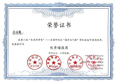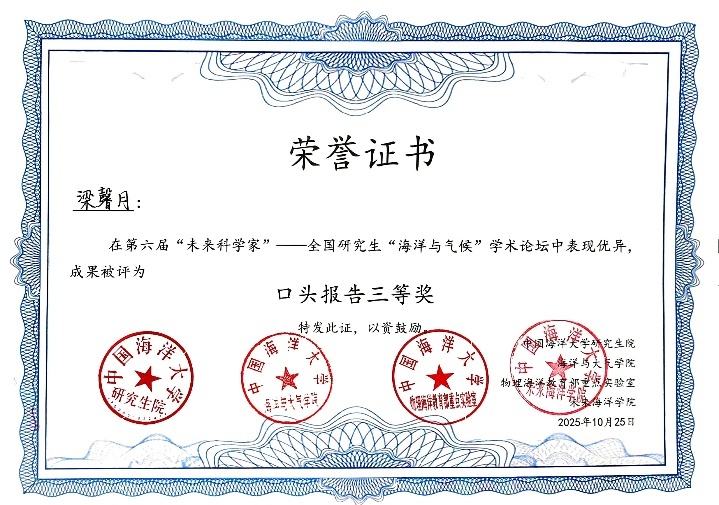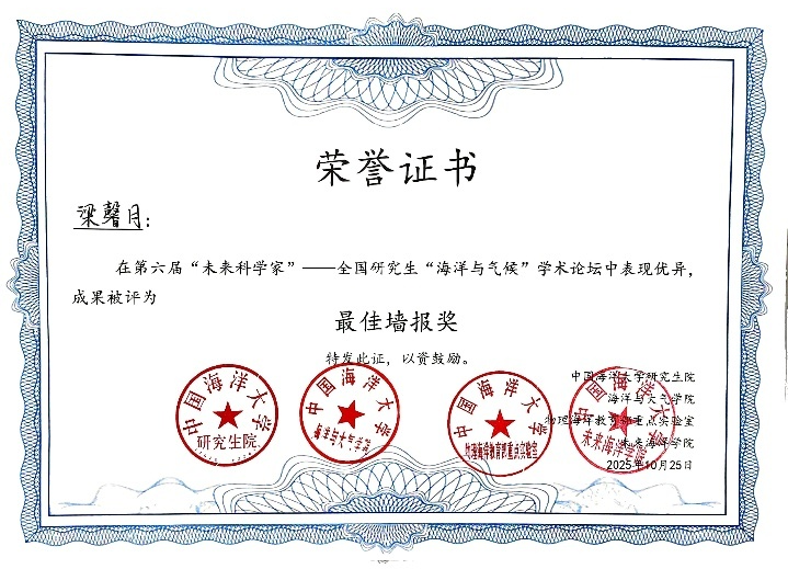 2025年10月25日,第六届“未来科学家”全国研究生“海洋与气候”学术论坛在山东青岛成功举办。本届论坛由中国海洋大学研究生院、海洋与大气学院、物理海洋教育部重点实验室及未来海洋学院联合主办,吸引了来自中国海洋大学、浙江大学、兰州大学、国防科技大学、河海大学、中国科学院大气物理研究所、中国科学院海洋研究所等全国20余所涉海高校与科研院所的近400名研究生参与。