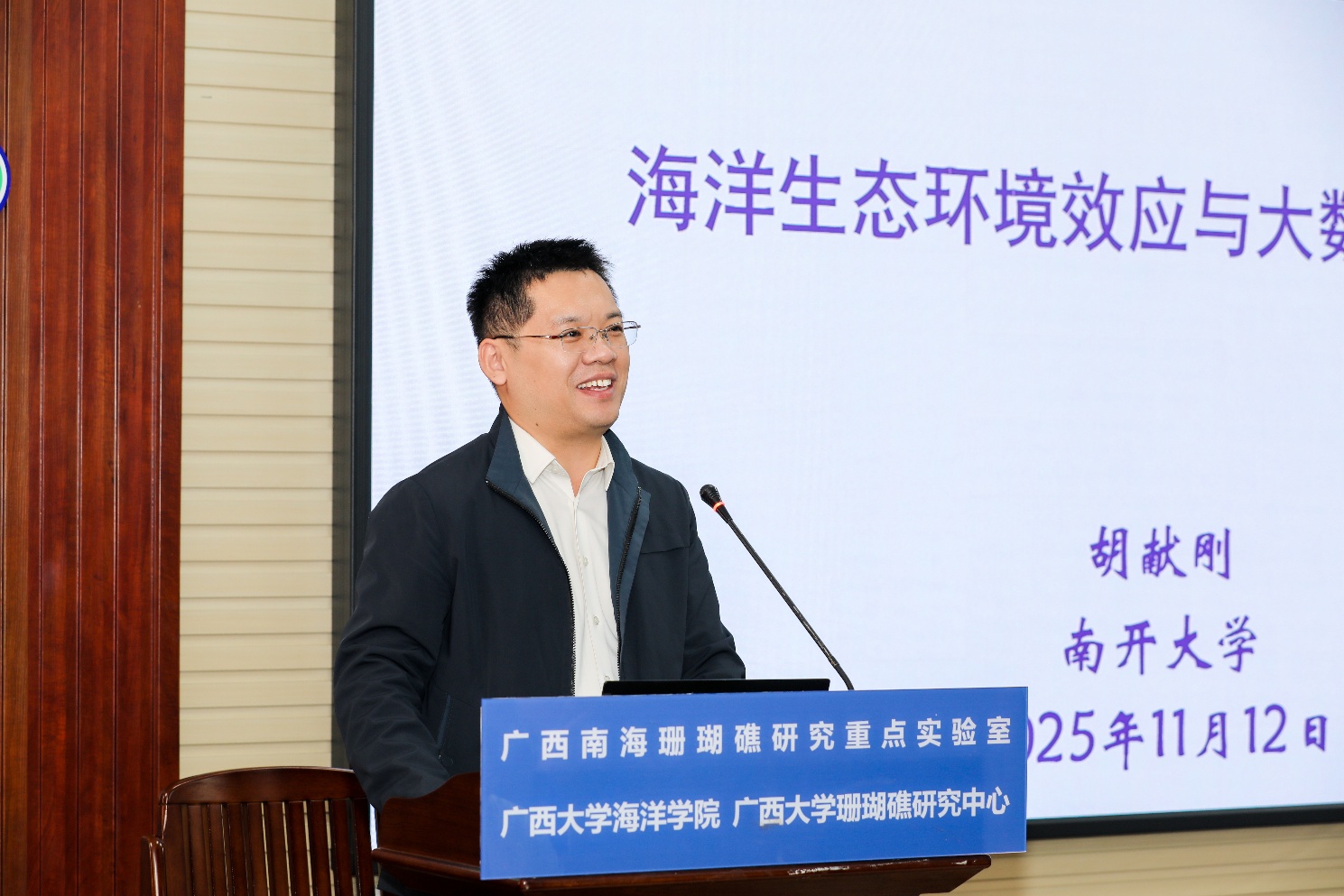 11月12日上午,南开大学教授、博士生导师胡献刚受邀到访实验室,带来题为《海洋生态环境效应与大数据分析》的专题学术报告。报告由海洋学院副院长徐向荣教授主持,广西南海珊瑚礁研究重点实验室主任、海洋学院院长余克服教授出席报告会。